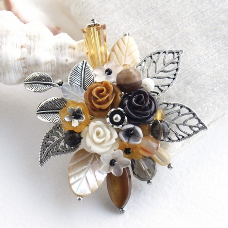 Так как сейчас большое количество обучающих материалов в интернете, то трудностей именно с обучением этому ремеслу не было. Я начала осваивать разные техники, шла от простого к сложному. В какой-то момент я нащупала свою нишу и наработала большую клиентскую базу, продавая часы с браслетами из натуральных камней. А чуть позже я научилась собирать украшения в технике плетения, после чего в 2015 году на смену часам хитом продаж стали броши в технике плетения.
