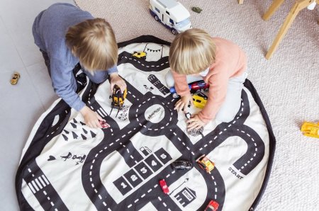Нарисуйте дорогу на большом куске картона или малярным скотчем на полу. Пусть ребенок расставит деревья, домики и играет в машинки или города.