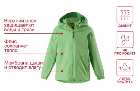 У бренда Reima есть своя коллекция одежды Softshell, которая обладает всеми необходимыми технологическими характеристиками, так что вы смело можете доверить ей заботу о вашем ребенке.