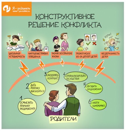 Какими бы ни были причины конфликтов с детьми, общие принципы их разрешения предполагают следующие действия: