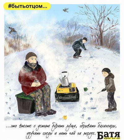 Быть отцом — это показать ребёнку то, что любишь сам — например, зимнюю рыбалку — и быть готовым к тому, что ему это не понравится.