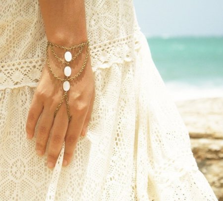 - Браслет на ногу. Слейв-браслет можно носить не только на кистях рук, но и на ногах. Такое украшение прекрасно дополнит образ во время отдыха на море.