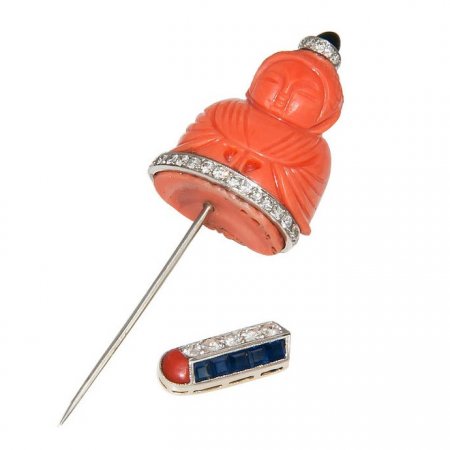 jabot pin состоит из двух отдельных декоративных элементов, соединенных с помощью штифта.