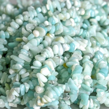 В магазинах Кафебижу можно подобрать и купить амазонит на любой вкус. Круглые гранёные бусины хороши для браслетов и ожерелий. Мелкая крошка дополнит яркое ассорти других камней, а возможно, станет лазурным берегом на картине или панно. Крупные прямоугольные бусины в форме багет можно использовать для массивных подвесок. Облагороженные или естественных тонов, бусины амазонита всегда привлекают внимание нежным извилистым рисунком и напоминают о солнечном побережье или же, напротив, морозном сверкающем утре.