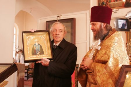 Кирилл Лавров на Леушинском подворье, в восстановлении которого артист принимал участие