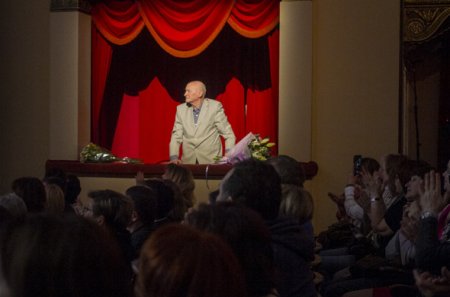 В последний раз папа был в театре, когда отмечался мой юбилей. Организатор премии Борис Петрович Беленький предложил мне провести его на сцене театра Вахтангова – сделать «Хрустальный бал» и пригласить всех моих близких. Запись этого вечера была показана на канале «Культура». Я вела церемонию вместе с моей внучкой Тонечкой, а папа сидел в ложе. Он смотрел на зал, который стоя аплодировал мне, на количество цветов, которые мне выносили, и в глазах папы я видела восторг и слезы. Он был и счастлив и горд за меня.