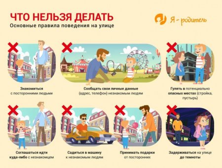 - знакомиться с посторонними взрослыми на улице, когда родителей нет рядом;