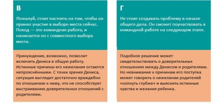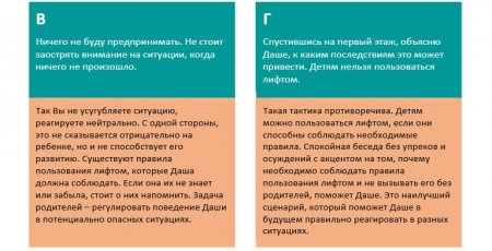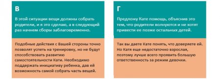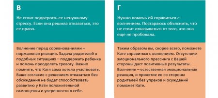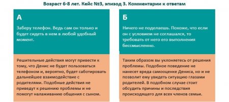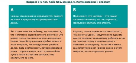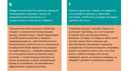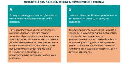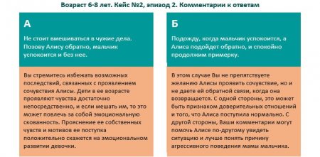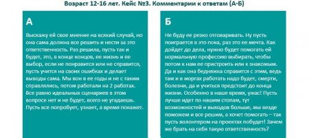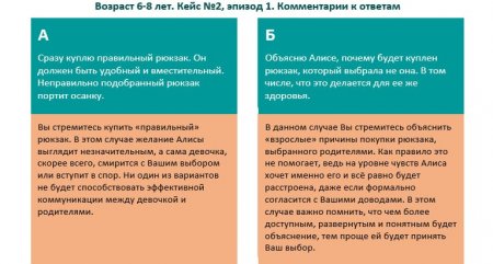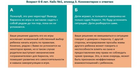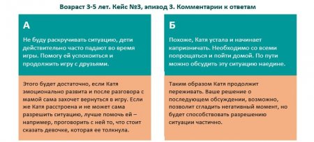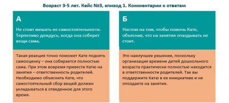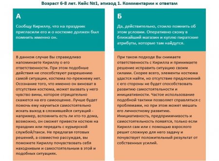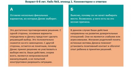 Во время прохождения кейс-игры родители могут запрашивать помощь или подсказку. В данном случае не стоит ни категорично отказывать, ни соглашаться помочь. Важно подчеркнуть, что любой из выбранных ими вариантов можно рассматривать как подходящий. А также отметить, что после знакомства с комментариями можно изменить выбор, что и станет развивающим эффектом игры.