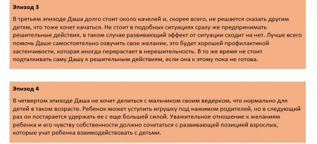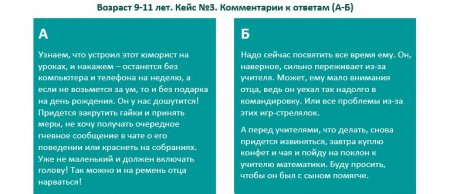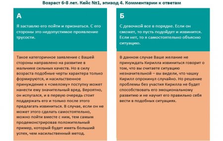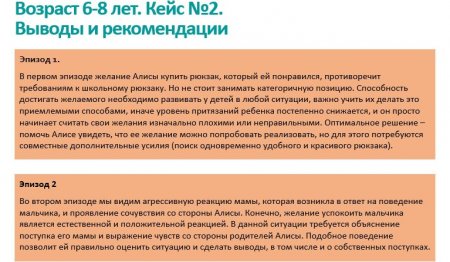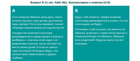 - комментарий ситуации от психолога с объяснением и рекомендациями.
