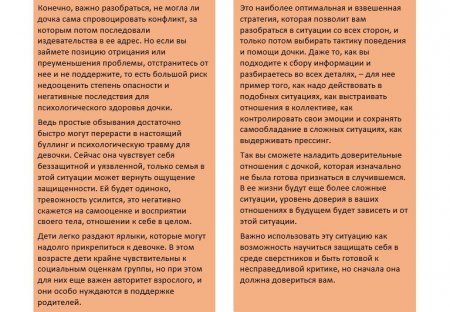 https://telefon-doveria.ru/kak-reagirovat-esli-tebya-stali-obzy-vat/ - Если вам показалось, что вашей поддержки недостаточно или ребенок все равно сомневается в себе и ему кажется, что вы его просто жалеете и успокаиваете, но не говорите горькую правду о его внешности, то можно поговорить со знакомыми, чтобы услышать их независимое мнение. Также можно позвонить в службу Детского телефона доверия для разговора с психологом 8 800 2000 122 и дальнейшей эмоциональной поддержки.