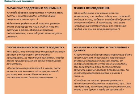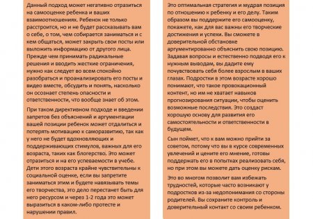 Как мы видим, для Никиты это еще и своего рода компенсация из-за отсутствия друзей и близких отношений, где он мог бы делиться своими мыслями и чувствами и получать необходимую в этом возрасте поддержку от ровесников. Возможно, он иногда чувствовал себя одиноко и переживал, что с ним что-то не так. Поэтому родителям очень важно поддержать его в блогерстве, не обесценивая его успехи и чрезмерно не пугая страшными проблемами. В этом возрасте они еще вполне прислушиваются к мнению родителей, поэтому важно не просто рассказать ему о том, что можно и что нельзя, а направить его активность в нужно русло, на простых примерах и фактах объяснить правила безопасности, обозначить границы допустимого. Например, о том, что нужно фиксировать нарушения безопасности и писать об этом в технические службы соц. сетей с предоставлением скриншотов. Через наглядные примеры объяснить, что нельзя выкладывать: