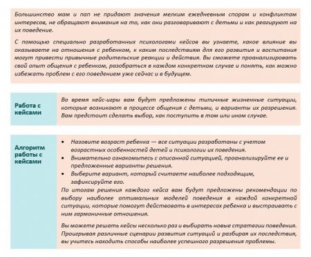 В кейсах предлагается четко обозначенный алгоритм решения задач, с которыми ежедневно сталкиваются родители в процессе воспитания своих детей.