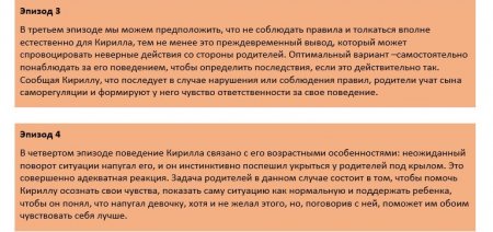 Также в кейсах содержаться варианты, связанные с попустительским или безразлично-«либеральным» стилем взаимодействия с детьми.