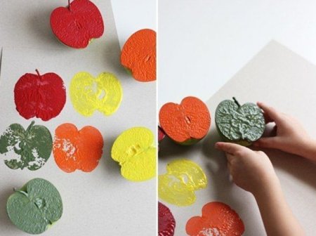 Штампование. Очень простая и интересная техника. Вместо магазинных штампов интересно будет использовать подручные средства: листья деревьев, дно пузырьков и бутылочек, крышки, кусочки кожи, крупные бусины, которые нужно покрыть краской и смело отпечатывать на листе. Это поможет ребенку понять форму разных предметов и попробовать себя в роли декоратора.