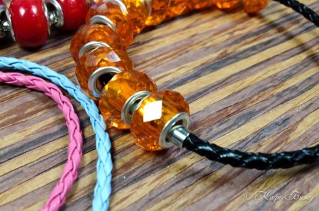 Необходимо учитывать, что на браслеты с перемычками и классической застежкой одеваются бусины с отверстием от 4.5 мм. А для браслета без перемычек с откручивающимся карабином подойдут бусины, отверстие которых не менее 3 мм.