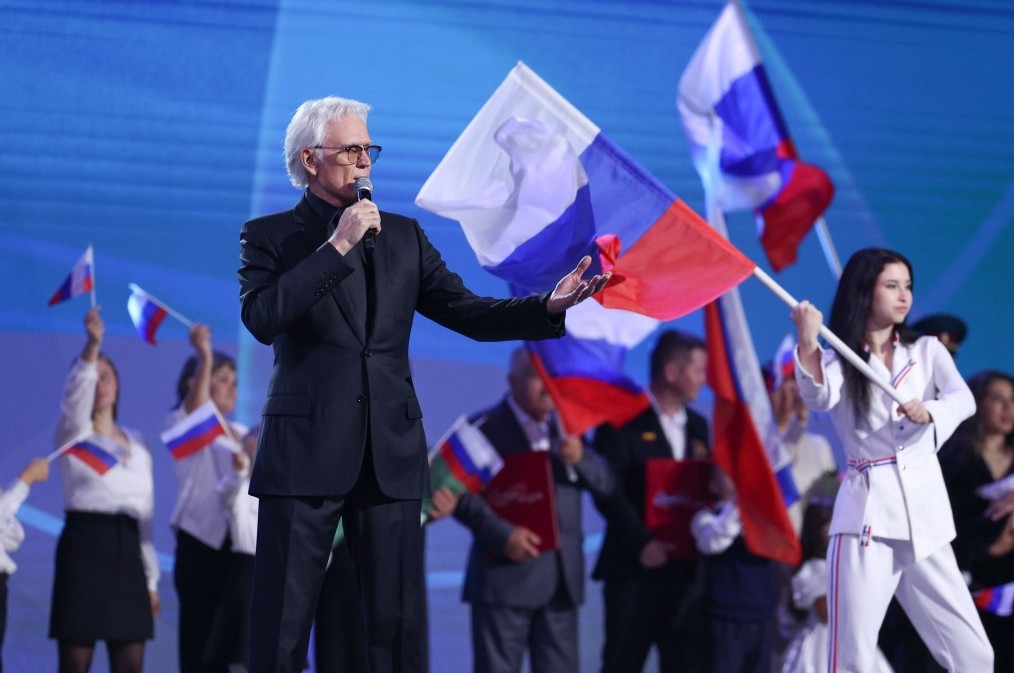 Для чествования лидеров на сцену поднялись губернатор Астраханской области Игорь Бабушкин и заместитель генерального директора Национального центра «Россия» Анастасия Звягина.