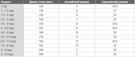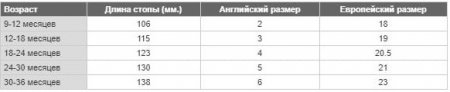 Здесь мы прикрепим несколько таблиц, с которыми будет проще определить размер обуви у ребенка по стопе или возрастным особенностям. Это упростит задачу, если вы отправитесь за покупками без ребенка или если в обувном отделе не окажется нужной информации.
