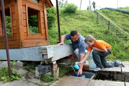 Зато активное бурление наблюдается на дорожке, ведущей от деревенской улицы к трубе с водой. Люди подходят почти непрерывающимся потоком – по одному и семьями, и каждый несёт по нескольку пустых пластиковых бутылей. Приходят сюда не только местные, вауловские, но приезжают со всей округи, из близлежащих деревень и сёл, из военных городков, где качество воды, по словам самих людей, отвратительное, везут эту воду в Чехов и даже в Москву. Уж очень, говорят, чистая и вкусная здесь вода, организм хорошо промывает.