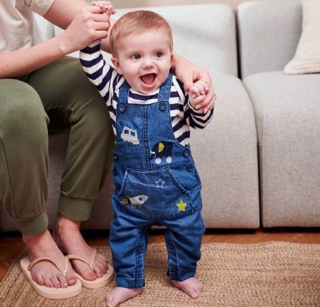 По стандартам ВОЗ, основанным на оценке моторного развития детей из нескольких стран (включая Индию, Норвегию, США), стоять с поддержкой ребенок начинает в период с 5 до 11,5 месяцев, а самостоятельно – с 7 до 17 мес. В среднем, ребенок в 8 месяцев способен стоять с поддержкой за грудь, слегка наклонившись вперед и пружиня. В 11 месяцев он поднимается на ножки, держась за ваши руки, стенки кроватки или манежа, подтягивается из позиции на одном колене, переступает с ноги на ногу, держась за опору. В 1,1 год он может стоять несколько секунд без опоры, садится на корточки и поднимается вновь. Еще через пару месяцев он научится вставать на ножки из положения на четвереньках самостоятельно, без вашей помощи.