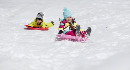 Если недалеко от вас есть горка, можно организовать катание с ледянками. Почему не санки и не тюбинги? Оба варианта могут сильно навредить другим катающимся при случайном наезде. Санки лучше оставить для спуска с небольшого уклона. А тюбинги – для специальных трасс.